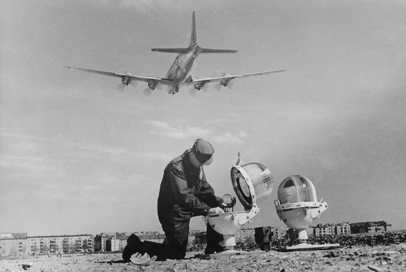 Berlin was 100 miles inside the Soviet zone. When Stalin finally shut down the borders on 24 June 1948, preventing all goods from coming in and out of the Allied sectors of Berlin, there was enough coal in the city for 45 days and food for just 36. An Allied operation was mounted immediately to bring in food using three air corridors across the western-occupied sectors of Germany to two airfields in Allied-controlled Berlin. But 3,000 tons of food a day was needed, as well as fuel and medicines. At one point planes were flying in one every minute, with planes just 250 feet apart. ‘It was very frightening on a clear night,’ said the pilot, Dick Arscott. But how much more scary on a bad night, when you couldn’t see? He lost a stone and a half in four weeks.