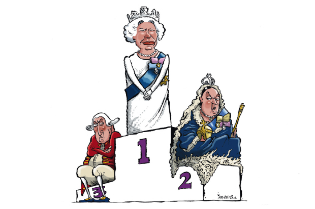 In nine months’ time we will ignore this kind of argument. Many will gush and some will carp. Elizabeth will appear unmoved, allowing multiple interpretations to be projected upon her. And each of us will feel a tiny bit better about ourselves. We will recognise that, whatever has or hasn’t happened in our national life over the past 63 years and seven months, we have all shared a single blessing of ‘steadiness, staying power and self-sacrifice’: as the national anthem has it, our gracious Queen, our noble Queen, who, happily, has reigned over us for a very long time indeed.