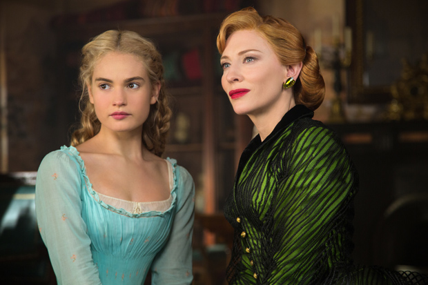 It stars Lily James (from Downton, apparently) as our heroine, Ella. Ella had a childhood as golden as her hair. Ella, as we see, lived in a heavenly house with a mummy and a daddy who loved her very much. But then mummy goes and blows it all by dying. Her last words to her daughter are, ‘Have courage and be kind’, which is not what I would say to any child of mine. Probably, my last words would be, ‘Why didn’t you ever call?’ Her doting father then marries a widow (Cate Blanchett, who is wonderful, the best thing in this by far) without noticing she is a total bitch, and then he can’t notice she is a total bitch, as he dies too.