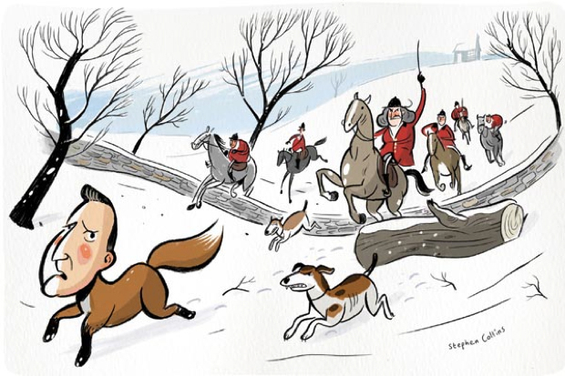David Cameron’s position on hunting has been similar. He cannot deny that he once rode to hounds with his friends in the beautiful English countryside where he spends weekends. But he has never said much about the experience other than it was terribly challenging to stay on the horse. Rather than saying ‘I enjoyed it’, he has always been careful to give the impression that hunting was going on around him, so he did it, and he survived to tell the tale. But he didn’t inhale, so to speak.