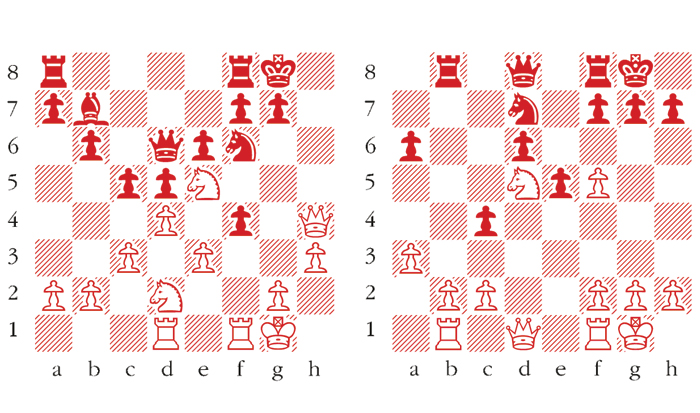 The champion has used one of his favourite non-standard openings to create a tense and unusual middle game, where storm clouds are hovering around the black king. In fact the defender here was down to a couple of minutes to complete all his moves by the time control at move 40. Precise defence is needed and 19 … fxe3 fails to 20 Rxf6 exd2 (20 … gxf6 21 Ng4 Rfe8 22 Qh6) 21 Rxd2 gxf6 22 Rd3 Rfe8 23 Qh6 winning. 19 … Qd8 20 Rxf4 Ne4 This leads to a hopeless endgame. Black had to preface this with 20 … cxd4. 21 Nxe4 Qxh4 22 Rxh4 dxe4 23 dxc5 bxc5 24 Rd7 Rab8 25 b3 a5 26 Rc7 a4 27 bxa4 Ba8 28 a5 Rb7 29 Rxc5 Ra7 30 Nc4 Black resigns