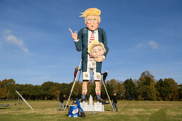 This weekend at the Edenbridge bonfire in Kent, near where I live, an effigy of Donald Trump will be burned. Last weekend, at Halloween, people up and down the land went out dressed up as him, or as a woman being groped by him. It is hard to imagine any American doing anything like this in homage to our own least popular political candidate in a generation, Jeremy Corbyn. And that’s caused me to wonder why, exactly — when we’re so turned off by our own politicians — we are so enthralled by the Donald across the pond.