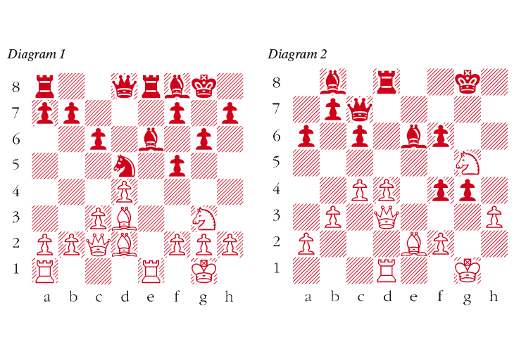 1 e4 c6 2 Nf3 More usual is 2 d4. 2 … d5 3 Nc3 dxe4 4 Nxe4 Nf6 Against the variation chosen by White this knight challenge is eminently feasible. In the variations emanating from 2 d4, some doubt can be cast upon Black’s willingness to disrupt his own pawn formation by developing the white king’s knight on e2. Here, of course, that option is no longer available. 5 Nxf6+ exf6 6 Bc4 Bd6 7 Qe2+ Be7 A loss of tempo but Black plans to bring his king’s rook to e8 when White in turn will have to waste time with his queen. 8 0-0 0-0 9 d4 Bd6 The bishop returns to an important diagonal. It is instructive to observe how White seems to suffer from problems based on possible alignment of Black’s dark-squared bishop and his queen in the b8-h2 trajectory. 10 c3 Na6 11 Qc2 Re8 12 Nd2 Nc7 13 Bd3 g6 14 Ne4 Bf8 15 Bd2 f5 16 Ng3 Nd5 17 Rfe1 Be6 (see diagram 1) 18 Nf1 White appears to be bereft of a plan. Instead of this retreat and the feeble weakening move that follows, White should store up energy with 18 Rad1. 18 … Bd6 The bishop returns to its natural post. 19 h3 Nf4 Even more aggressive is 19 … Qh4. 20 Bxf4 Bxf4 21 Nd2 Bd5 22 Rxe8+ Qxe8 23 c4 Be6 24 Nf3 Qd7 25 Rd1 Rd8 26 Qa4 a6 27 Qb4 Bb8 28 Be2 Qc7 Now Black’s queen and bishop are ideally aligned. 29 b3 g5 A bold attack but Black’s king is so well surrounded by a hedge of pawns that he can do this with impunity. 30 Qd2 f6 31 g3 f4 32 g4 h5 33 Qd3 hxg4 34 Nxg5 (see diagram 2) White may have been relying on this since 34 … fxg5 fails to 35 Qg6+. However, Black’s next is a complete refutation. 34 … Bc8 35 Ne4 If 35 Qg6+ Qg7 leaves White with a hopeless endgame. 35 … f3 36 Bxf3 gxf3 37 Nxf6+ Kh8 38 Kf1 Bxh3+ 39 Ke1 Qe7+ 40 Kd2 Qxf6 41 Kc1 Bf4+ 42 Kb2 Rxd4 43 Qc3 Rd2+ White resigns