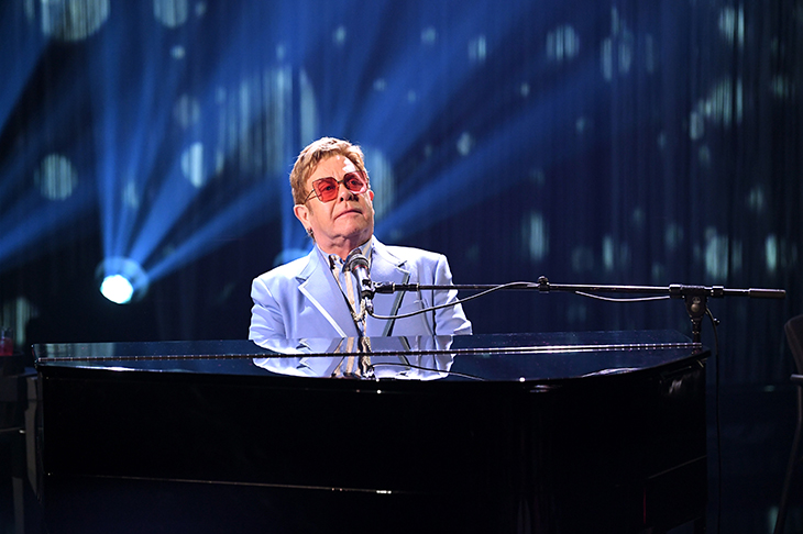 Uniquely of the glam rockers who shaped my adolescent fantasies, he never had any sex appeal — and if you’re not a sexy pop star you’d better be profound, which he also isn’t. Always unoriginal, he changed his name from Reg Dwight (which actually suits him) and called himself after his early bandmates Elton Dean and Long John Baldry. He was probably the only musician ever to return from a residency on the Reeperbahn a virgin, as inept a lyricist as he was a lover — ‘We could be such a happy pair/And I promise to do my share’. So he was lucky to meet the imaginative teenage songwriter Bernie Taupin and find fame at the age of 23.