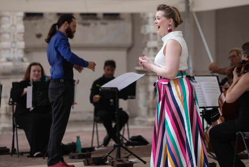 Still, I don’t think I’ve ever seen an opera crowd (and I’ve certainly never seen an orchestra) looking quite so happy to be there. The English summer opera fantasy is a sort of Rex Whistler fête champêtre with an expensive soundtrack. An element of risk — whether wasp attack or drenching — is the grit in the oyster: the touch of reality that allows us to believe that it’s all delightfully eccentric rather than self-indulgent. ‘There’s a fascination frantic in a ruin that’s romantic,’ sang Yvonne Howard, in an aria from The Mikado, as the remains of Holland House did their best John Piper impression against gathering black clouds. Was that a rumble of thunder in the distance, or just an Emirates A380 in a holding pattern over South Acton?
