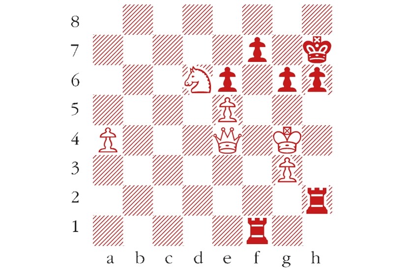 Black to play. Rios–Adams, Online Olympiad, August 2020. The White king is running short of squares. Which move did Adams play to tighten the noose? Answers should be emailed to chess@spectator.co.uk by Monday 14 September. There is a prize of £20 for the first correct answer out of a hat. Please include a postal address and allow six weeks for prize delivery.