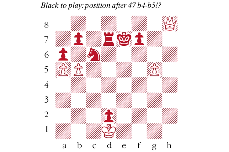 just tried the ingenious 47 b4-b5!?, trying to detonate the queenside.