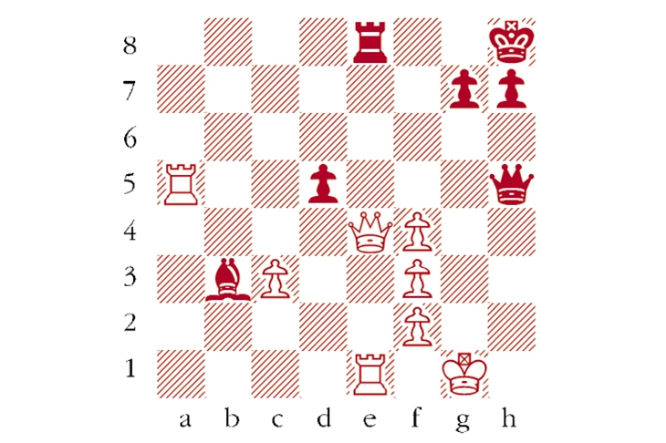 Black to play. Geller–Sveshnikov, USSR Ch 1978. Geller’s last move, 34 Rb1-e1 looked clever, since Black cannot safely capture the queen. But Sveshnikov’s next move exposed a critical flaw in Geller’s idea. What did he play? Answers should be emailed to chess@spectator.co.ukby Monday 30 July. There is a prize of £20 for the first correct answer out of a hat. Please include a postal address.