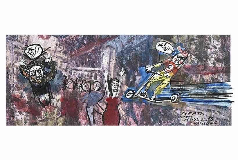 I almost didn’t get to Hatchards, having come close to being turned into a demolition site myself by an out-of-control e-scooter — not that there is such a thing as an in-control e-scooter — mounting the pavement at the speed of light, as much to the surprise of its rider as anyone else. E-scooter riders invariably wear an insolent ‘Who, me?’ expression. My expression is a simple question mark. ‘Why?’ To what end or to whose advantage has the e-scooter been legalised? Some inventions justify the dangers they pose. The aeroplane. The motor car. Maybe — I only say ‘maybe’ — the television. But how is humanity served by the e-scooter when we have buses? Next you’ll be telling me that Facebook is a good thing because it fosters informed debate.