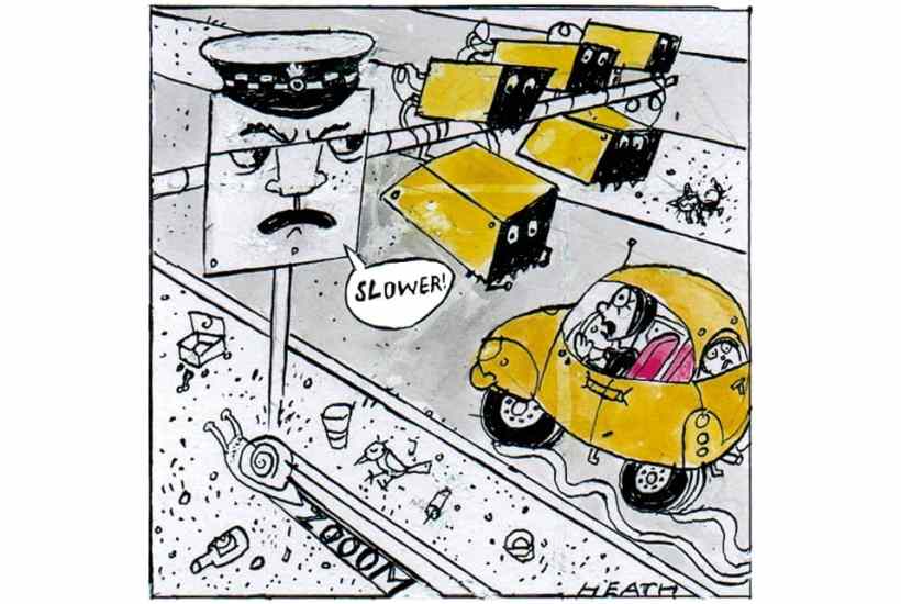 ‘Twenty is plenty’ say the passive-aggressive road signs as you drive very slowly through 20mph zones all over Britain. The slogan is accompanied by a cartoon drawing of a snail. Then you get a frowny-frowny-frowny electronic sign and you slow from 25 to 20 to make it turn into a smiley face. That’s how we’ve been softened up: with a cocktail of the sanctimonious and the kindergarten.