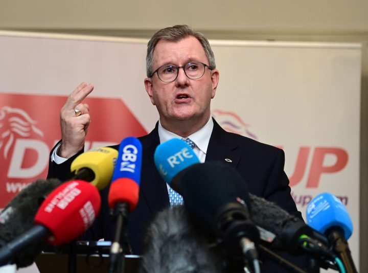 On Monday afternoon, Donaldson met with some of his fellow MPs and peers at the DUP’s headquarters in East Belfast, followed by a convention of the 130-strong executive in County Down. A press conference for Donaldson to address the media was scheduled after the executive meeting. Its start time slipped later and later into the night, and the leader finally emerged just before 1.00 am. He announced that his party’s executive had agreed a deal by which they would restore devolution in return for legislation at Westminster to protect the Acts of Union, and ‘remove checks on goods moving within the UK and remaining in Northern Ireland’.