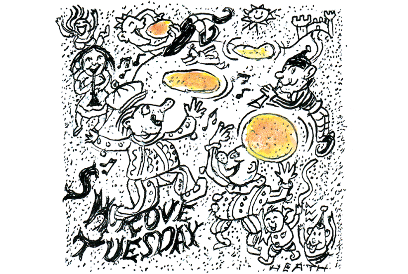 On Shrove Tuesday the church bells rang out, calling parishioners to confess their sins and receive penance – to be ‘shriven’. The bells rang while wives and cooks were making pancakes in the kitchen. Eventually pancakes had their own bell in churches all over England. Thomas Hearne writes in the 18th century: ‘It hath been a custom in Oxford for the scholars of all houses, on Shrove Tuesday, to go to dinner at 10 clock, at which time the little bell call’d Pan-cake Bell rings.’ A few of these bells remain intact: there is the Fritter bell in Maidstone and the Old Pancake Bell in Northamptonshire.