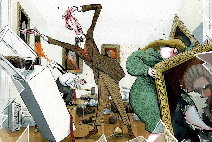 I noted here some while ago my admiration for the guards at the Uffizi in Florence who took a robust attitude towards some green kidults who turned up there to try to glue themselves to a Botticelli. I compared them favourably with the museum staff in our own country, because young zealots gluing themselves to parts of our national collection has become an almost weekly event in the UK. If you want to ‘stop oil’ then it seems to be accepted that you’ll soon need to glue yourself to a Van Gogh, ruin a frame here, throw a tin of tomato soup at a canvas there. While people do that, the museum staff will be found wandering aimlessly, speaking into their walkie talkies, because none of it really matters, does it? Why bother preserving the collection you’re paid to preserve? Besides, the two-year-olds want to have their way, and nobody is going to say no to them.