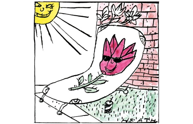 The temperature in the Palm House is kept at 21°C all year round, and my first task was to increase humidity by damping down the floors and spraying the leaves of tall palms, creating my own personal tropical rainstorm with a heavy-duty hosepipe. I wore the black leather clogs, with metal rails nailed to the wooden soles, that I had been issued on my first day at Kew, since they were much more comfortable and less slippery than wellington boots. The rest of the day was spent sweeping paths, ‘picking over’ dead leaves and watering pots on the staging – dull work enlivened by the presence of 1,000 plant species, from cocoa and rubber to jade vine and Madagascar periwinkle. The unpronounceable Latin name on the label protected the coca plants from theft.