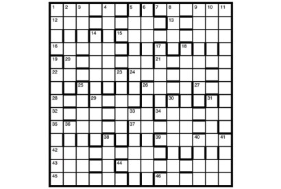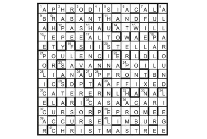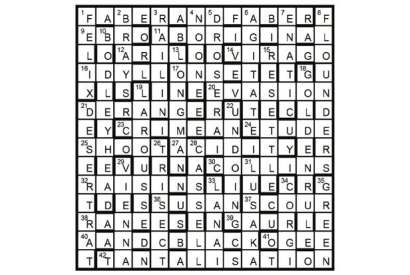The unclued Across lights are ANAGRAMS of French numbers (22: trente, 24: soixante, 26: sept, 29: onze, 43: trois) and…