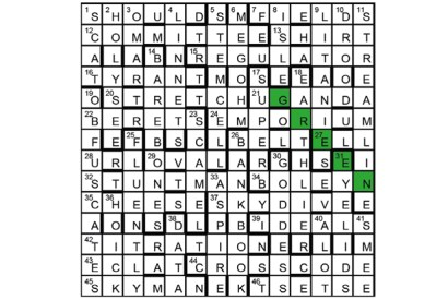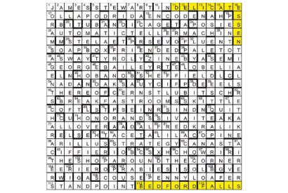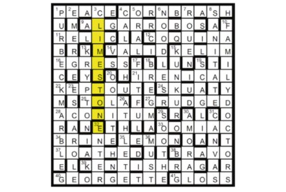 Having solved the puzzle, solvers are required to highlight a 2×2 square which contains the four letters of the otherwise…