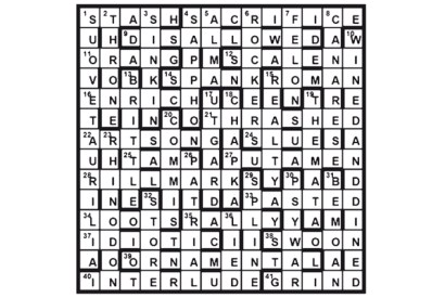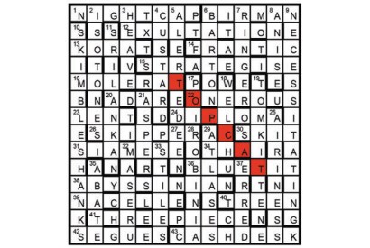 The thematic unclued lights (4D, 20D, 34D, 40A and 41A+27A) are COUNTRIES, and the other unclued lights are their anagrams,…