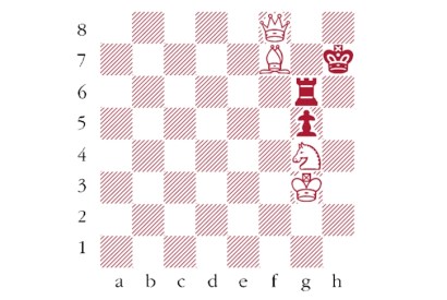 White to play and draw. The conclusion of an endgame study composed by J. Hašek (1951). Black is preparing a…