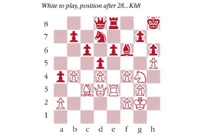 White to play, a variation from McShane–-Kamsky. In the game above, I was hoping to see 31…Qa5, as I had…