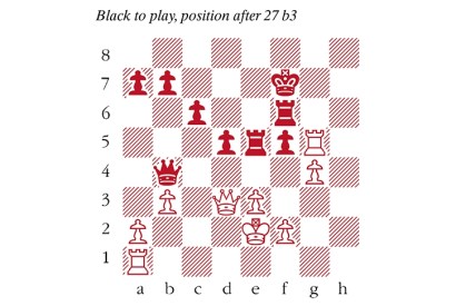 Black to play. Puranik–Sjugirov, another spectacular game played at the Aeroflot Open. Puranik was perhaps counting on 1…Rc1 2 Qa3…