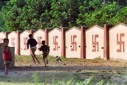 There is a nice row of swastikas at head height in Burlington Gardens, behind the Royal Academy. They are carved…